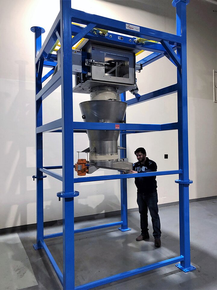 Super Sacks are filled and weighed in real time through a scale that is connected to a PLC. Call Us About Your Specialized Equipment Needs.